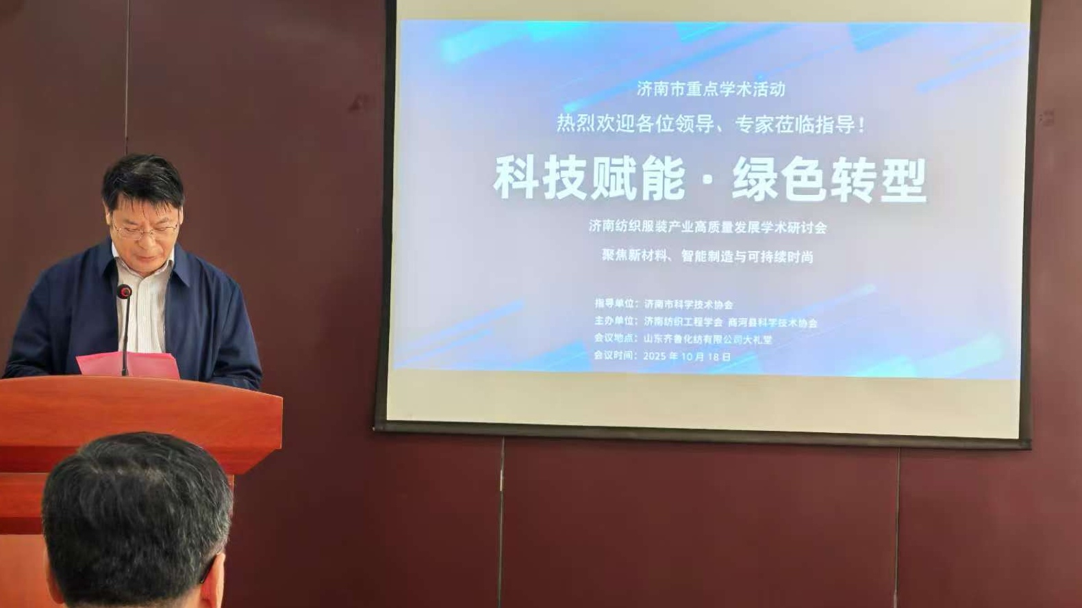 2025年10月18日,以"科技赋能 绿色转型"为主题的济南纺织服装产业高质量发展学术研讨会,在山东齐鲁化纺股份有限公司大礼堂隆重举行。本次研讨会聚焦"新材料、智能制造与可持续时尚",汇聚了政府领导、行业专家及企业领袖百余人,共同探讨济南市纺织服装产业创新升级与可持续发展之路。