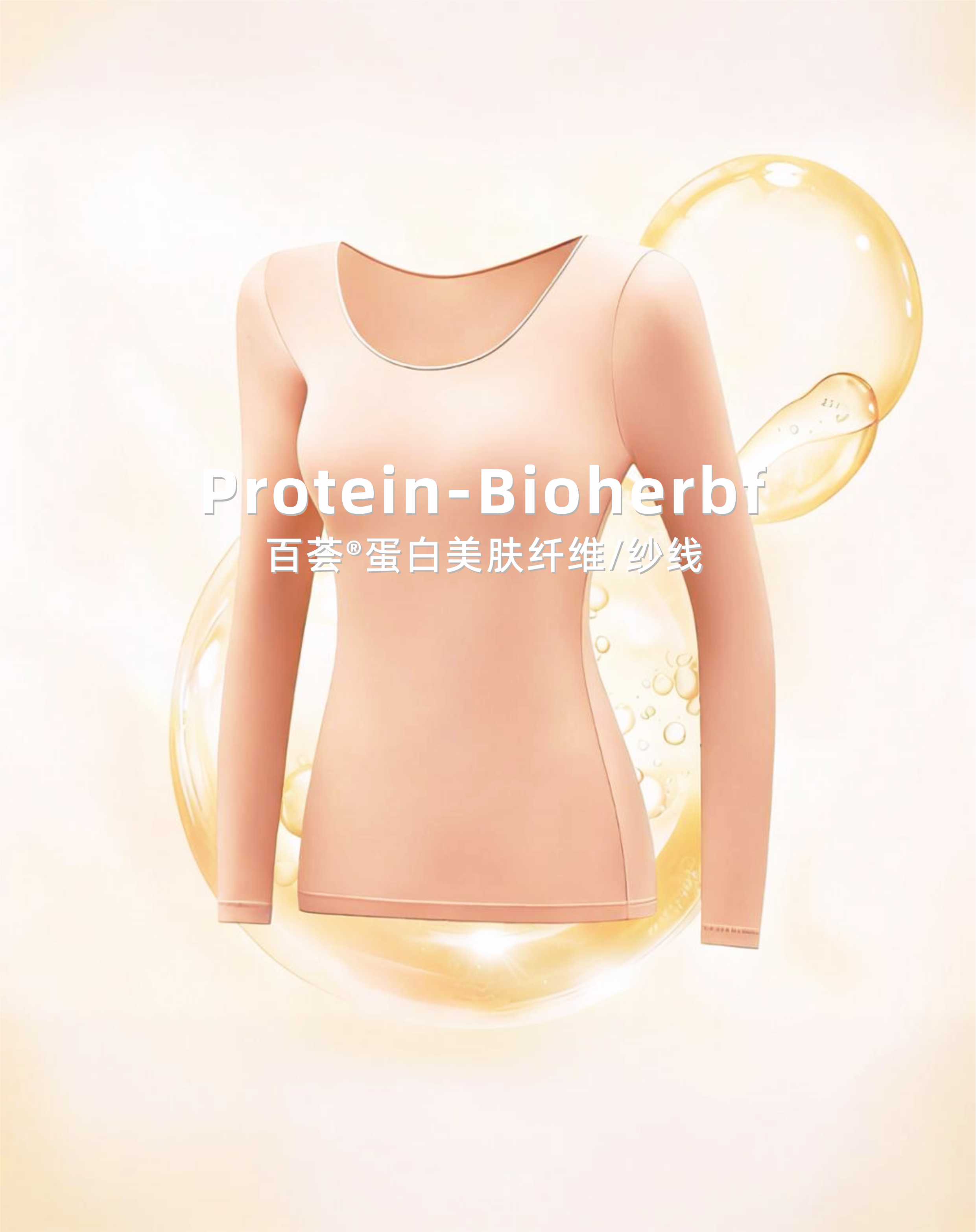 传统植物蛋白纤维常因结构不稳定,出现水洗后活性失效、纤维易断裂变形等问题,难以实现长期护肤效果。而百荟®蛋白美肤纤维凭借稳定的功能结构,不仅能耐受多次水洗,始终保持纤维形态与护肤活性,还能通过“接触式滋养”——每一次肢体伸展、每一次面料移动,都能温和激活纤维中植物蛋白的护肤能量,让护肤无需额外步骤,融入日常穿着的每一刻。