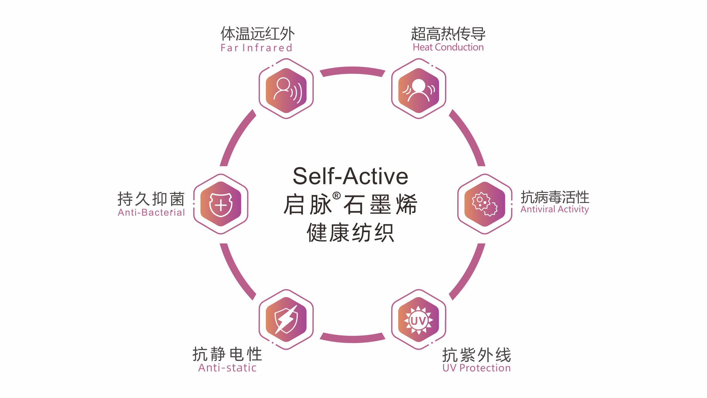 After testing by national authoritative testing institutions and feedback from scientific practice, Self-Aetive graphene material exhibit excellent health and protective properties, including far-infrared body temperature regulation, ultra-high thermal conductivity, long-lasting antibacterial activity, antiviral activity, antistatic properties, UV resistance, anti-mite properties, and skin-friendly characteristics.