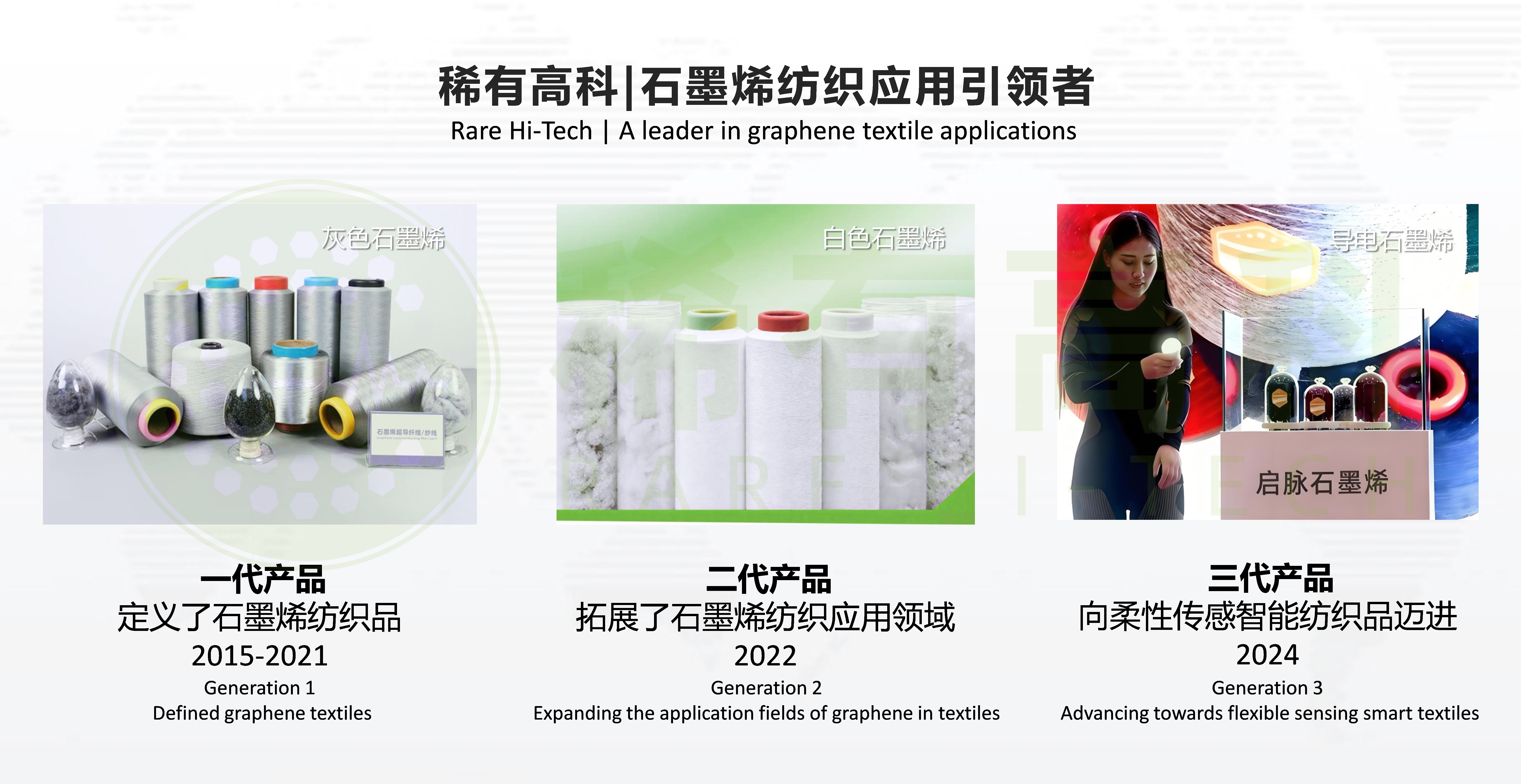 Shandong Rare Technology Development Co., Ltd. (Rare Hi-Tech) utilizes patented graphene nanophase change materials, employing an amphiphilic biomass dispersion and exfoliation agent with a conjugated hydrophobic end to intercalate and exfoliate graphene, while the hydrophilic end forms a long-term stable high-purity graphene dispersion with the solvent. Through proprietary solid-liquid mixing technology, the graphene dispersion achieves uniform adsorption and efficient complexation with cellulose substrates and PET (PA6) substrates, producing a high-quality multifunctional graphene-modified new material for textiles with excellent biocompatibility and ultra-high thermal conductivity Self-Aetive graphene superconducting fiber/yarn.