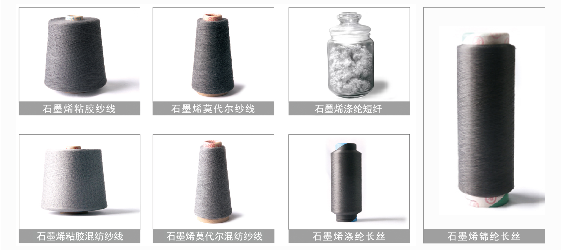 石墨烯导电混纺纱Graphene conductive blended yarn:32S/1(袜子用纱Yarn for socks);40S/1(服装用纱Yarn for clothing);