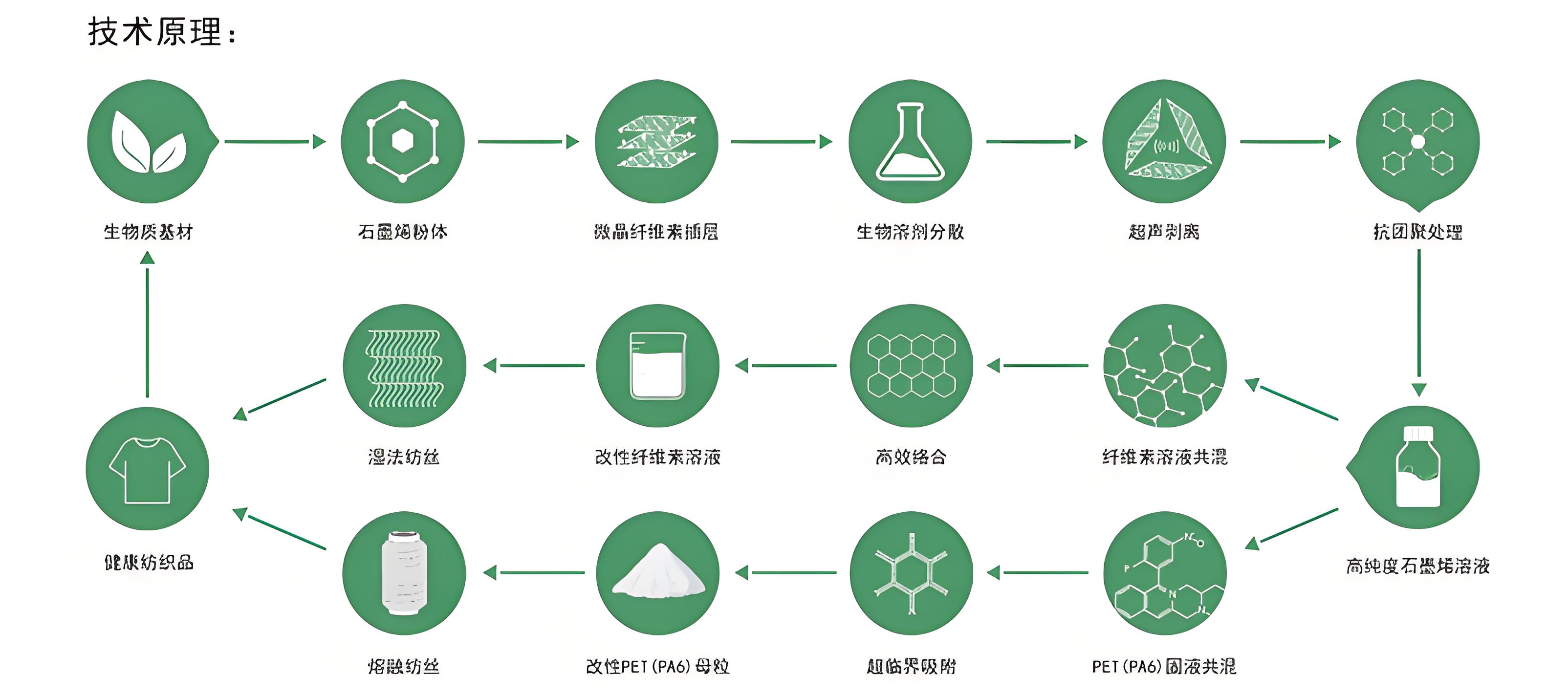该产品应用生物溶剂替代化学溶剂解决了加工生产过程中石墨烯片层团聚和性能不稳定问题,在大大提升产品品质和提高功能的同时,降低了生产资源的消耗,实现了绿色、健康、低碳、安全和可持续发展。