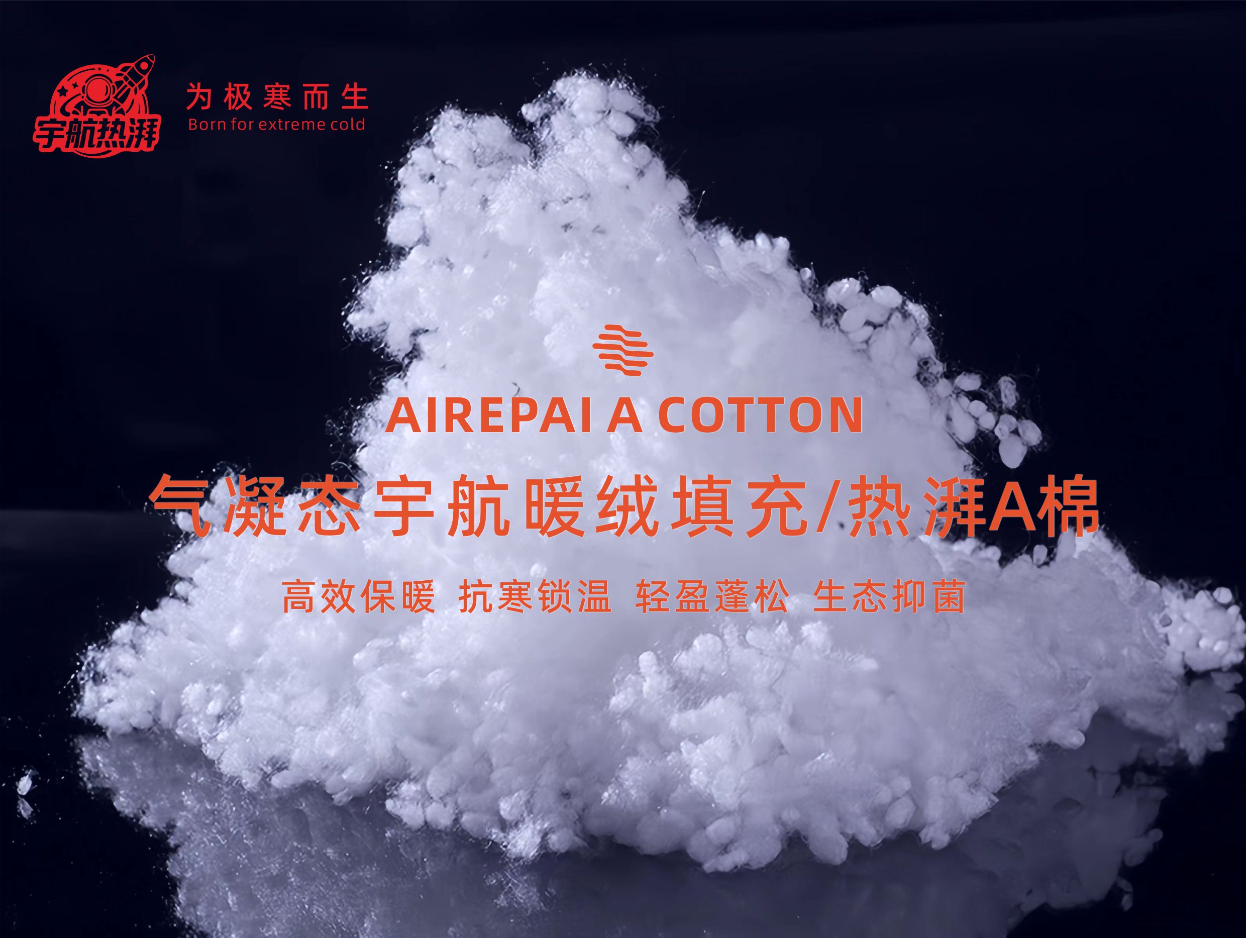 熱湃®エアロゲル宇宙暖绒(熱湃A綿)は、革新的で高効率の保温テキスタイル素材であり、その技術の源は軍の極寒地帯での作戦装備開発プロジェクトに遡ります。軽量でふわふわしたテキスタイルに特化し、航空宇宙素材であるシリカエアロゲルの低密度、低熱伝導率、高孔隙率という科学的防寒・断熱・超軽量特性を活かし、バイオアミノ活性因子の生態抗菌・肌ケア・健康特性を融合させています。特有のマイクロ気体混合特許技術(国家特許202320377366.5)によって製造され、様々なアウトドア防寒衣類やホームテキスタイル製品に理想的な新型の防寒保温詰め物素材です。