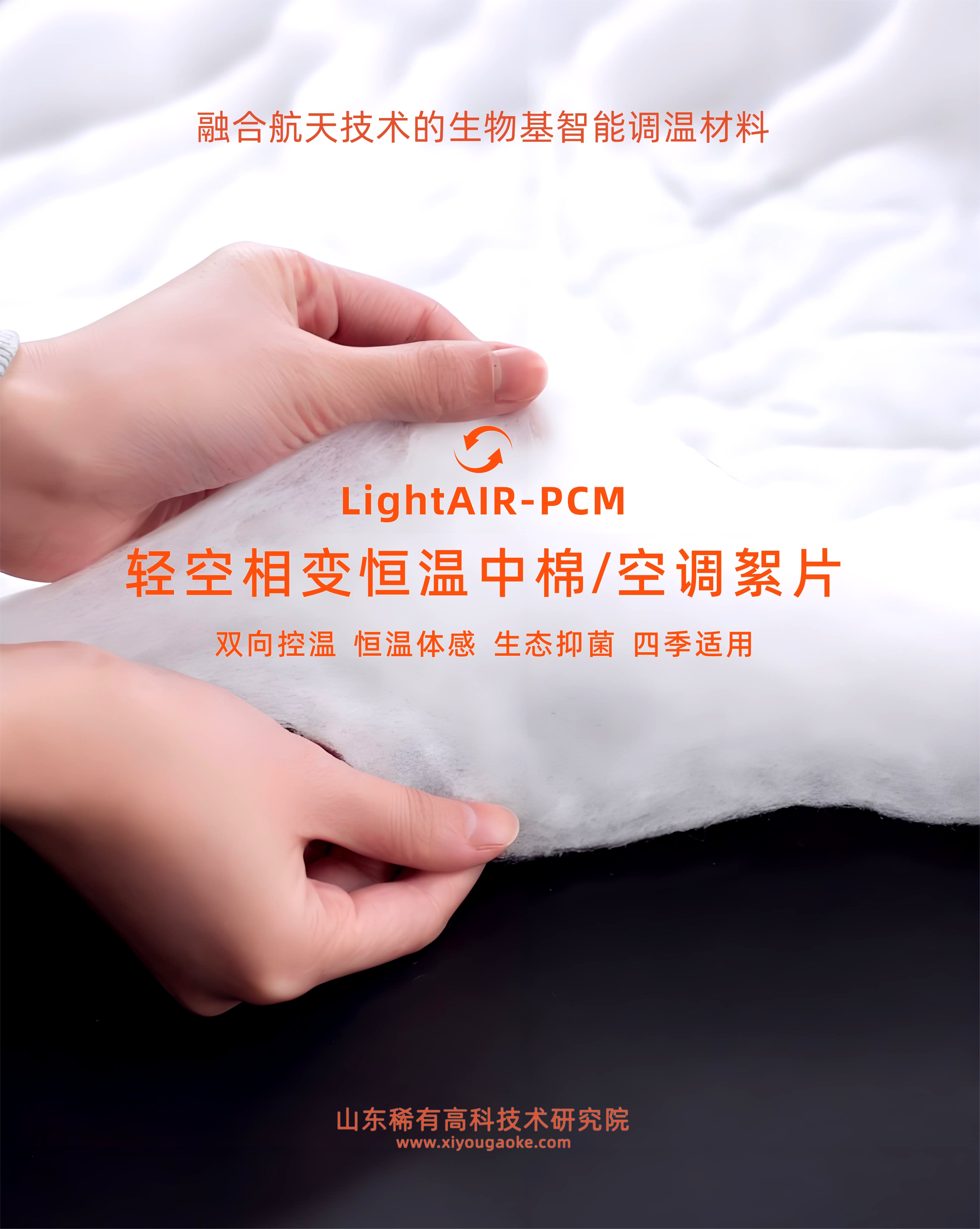 轻空®相变恒温中棉,是一款融合航天科技的智能调温复合材料,其核心在于采用轻空微胶囊包覆的相变材料(L-PCM),通过纳米限域封装技术嵌入纤维基材,实现双向温度调节功能。
