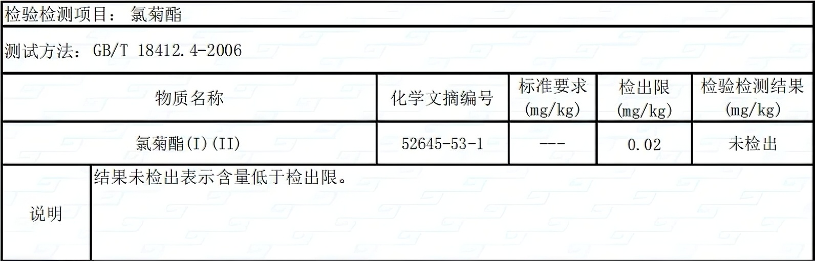 不含氯菊酯化学农药成分检测: